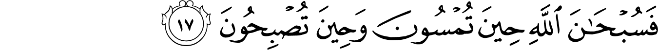 | 30:17:1 | فَسُبۡحٰنَ | فَسُبْحٰنَ | فَسُبْحٰنَ | فَسُبْحٰنَ | فَسُبْحٰنَ | فَسُبْحَـٰنَ | فسبحـن | فَسُبْحَٰنَ | ﭝ | فَسُبْحَٰنَ | فَسُبْحَانَ | فسبحان | فَسُبۡحَٰنَ |