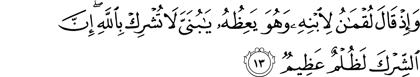 | 31:13:1 | وَاِذۡ | وَاِذْ | وَاِذْ | وَاِذْ | وَاِذْ | وَإِذْ | واذ | وَإِذْ | ﭦ | وَإِذْ | وَإِذْ | واذ | وَإِذۡ | وَإِذۡ | ﱖ | ﱖ |