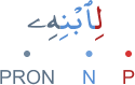 | 31:13:4 | لِا بۡنِهٖ | لِابْنِهٖ | لِابْنِهٖ | لِابْنِهٖ | لِابْنِهٖ | لِٱبْنِهِۦ | لابنه | لِٱبْنِهِۦ | ﭩ | لِٱبْنِهِۦ | لِابْنِهِ | لابنه | لِٱبۡنِهِۦ |