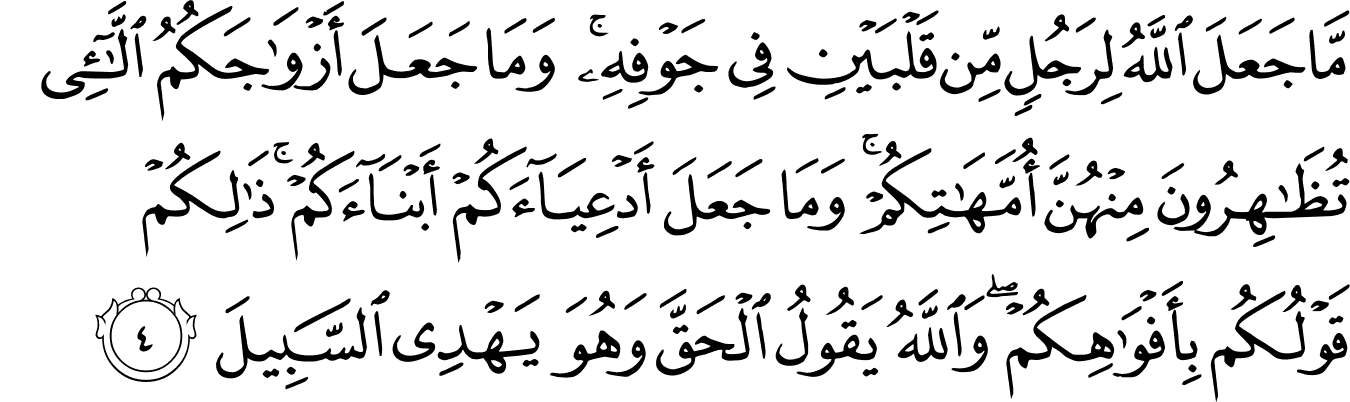 | 33:4:6 | قَلۡبَيۡنِ | قَلْبَیْنِ | قَلْبَیْنِ | قَلْبَيْنِ | قَلْبَيْنِ | قَلْبَيْنِ | قلبين | قَلْبَيْنِ | ﭻ | قَلْبَيْنِ | قَلْبَيْنِ | قلبين | قَلۡبَيۡنِ |