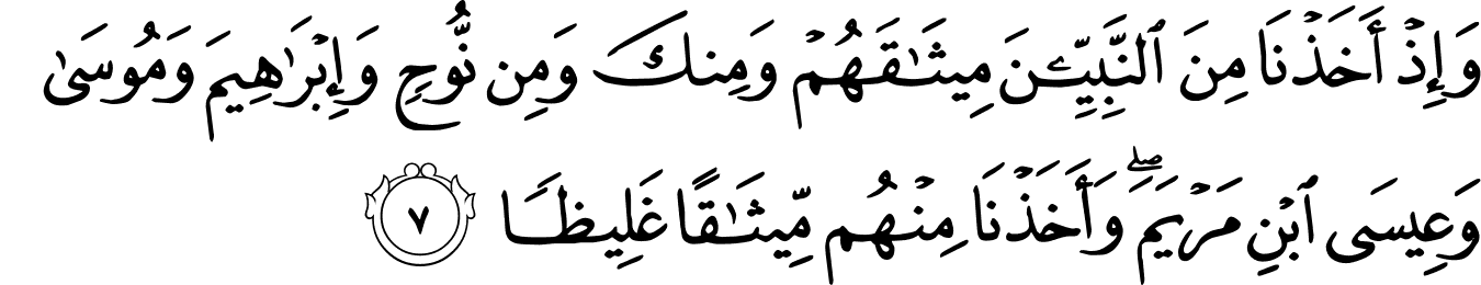 | 33:7:4 | النَّبِيّٖنَ | النَّبِیّٖنَ | النَّبِیّٖنَ | النَّبِيّٖنَ | النَّبِيّٖنَ | ٱلنَّبِيِّـۧنَ | النبيـۧن | ٱلنَّبِيِّـۧنَ | ﭔ | ٱلنَّبِيِّـۧنَ | النَّبِيِّينَ | النبيين | ٱلنَّبِيِّـۧنَ |