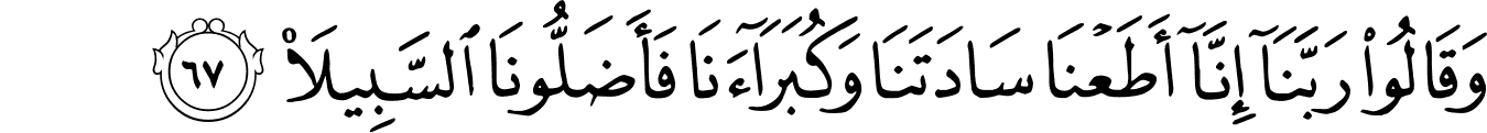 | 33:67:6 | وَكُبَرَآءَنَا | وَكُبَرَآءَنَا | وَكُبَرَآءَنَا | وَكُبَرَآءَنَا | وَكُبَرَا࢜ءَنَا | وَكُبَرَآءَنَا | وكبرانا | وَكُبَرَآءَنَا | ﮆ | وَكُبَرَآءَنَا | وَكُبَرَاءَنَا | وكبراءنا | وَكُبَرَآءَنَا |