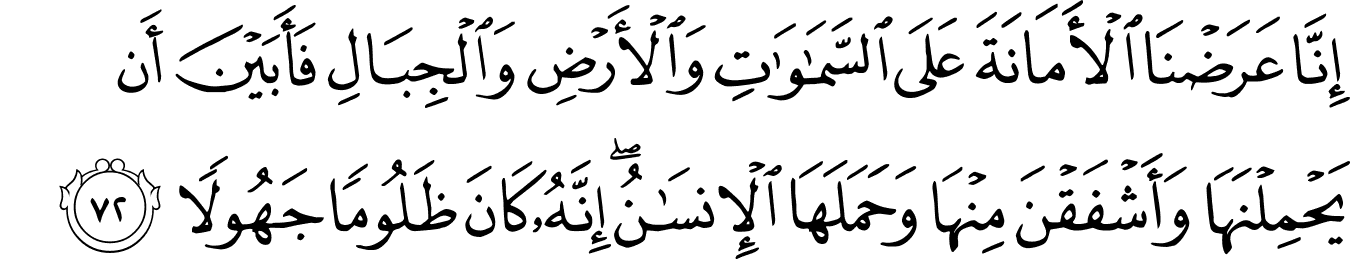 | 33:72:14 | الۡاِنۡسَانُؕ | الْاِنْسَانُ ؕ | الْاِنْسَانُ ؕ | الْاِنْسَانُﵧ | الْاِنْسَانُؕ | ٱلْإِنسَـٰنُ ۖ | الانسـن | ٱلْإِنسَٰنُۖ | ﯬﯭ | ٱلْإِنسَٰنُۖ | الْإِنسَانُ ۖ | الانسان | ٱلۡإِنسَٰنُۖ |