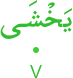 | 35:28:9 | يَخۡشَى | یَخْشَی | یَخْشَی | يَخْشَي | يَخْشَي | يَخْشَى | يَخْشَى | ﯟ | يَخْشَى | يَخْشَى | يَخۡشَى | يَخۡشَى | ﲮ | ﲮ |