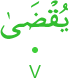 | 35:36:7 | يُقۡضٰى | یُقْضٰی | یُقْضٰی | يُقْضٰي | يُقْضٰي | يُقْضَىٰ | يُقْضَىٰ | ﮬ | يُقْضَىٰ | يُقْضَىٰ | يُقۡضَىٰ |