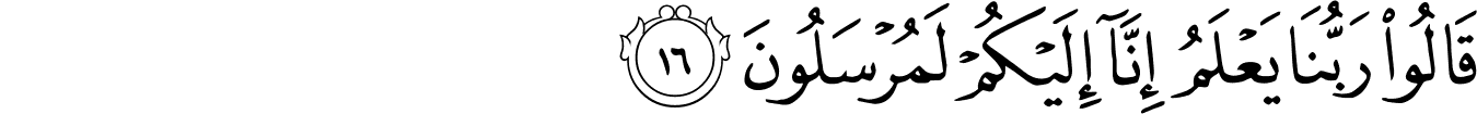 | 36:16:6 | لَمُرۡسَلُوۡنَ | لَمُرْسَلُوْنَ | لَمُرْسَلُوْنَ | لَمُرْسَلُوْنَ | لَمُرْسَلُوْنَ | لَمُرْسَلُونَ | لمرسلون | لَمُرْسَلُونَ | ﭻ | لَمُرْسَلُونَ | لَمُرْسَلُونَ | لمرسلون | لَمُرۡسَلُونَ |