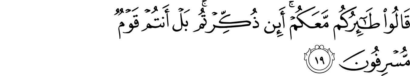 | 36:19:2 | طٰۤٮِٕـرُكُمۡ | طَآىِٕرُكُمْ | طَآىِٕرُكُمْ | طَآئِرُكُمْ | طَا࢜ىِٕرُكُمْ | طَـٰٓئِرُكُم | طـئركم | طَٰٓئِرُكُم | ﮒ | طَٰٓئِرُكُم | طَائِرُكُم | طايركم | طَٰٓئِرُكُم |