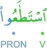 | 36:67:7 | اسۡتَطَاعُوۡا | اسْتَطَاعُوْا | اسْتَطَاعُوْا | اسْتَطَاعُوْا | اسْتَطَاعُوْا | ٱسْتَطَـٰعُوا۟ | استطـعوا۟ | ٱسْتَطَٰعُوا۟ | ﯝ | ٱسْتَطَٰعُوا۟ | اسْتَطَاعُوا | استطاعوا | ٱسۡتَطَٰعُواْ |