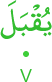 | 3:85:7 | يُّقۡبَلَ | یُّقْبَلَ | یُّقْبَلَ | يُّقْبَلَ | يُّقْبَلَ | يُقْبَلَ | يُقْبَلَ | ﭵ | يُقْبَلَ | يُقْبَلَ | يُقۡبَلَ |