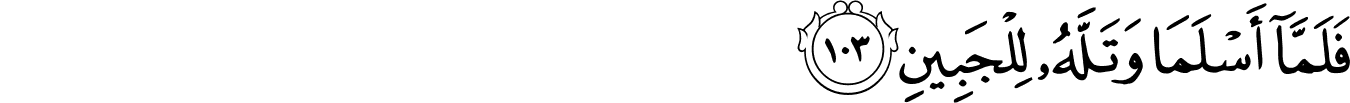 | 37:103:3 | وَتَلَّهٗ | وَتَلَّهٗ | وَتَلَّهٗ | وَتَلَّهٗ | وَتَلَّهٗ | وَتَلَّهُۥ | وتله | وَتَلَّهُۥ | ﭓ | وَتَلَّهُۥ | وَتَلَّهُ | وتله | وَتَلَّهُۥ |
