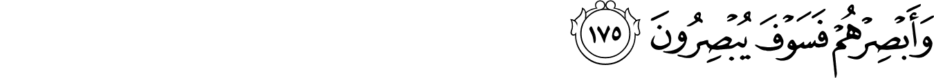 | 37:175:1 | وَاَبۡصِرۡهُمۡ | وَّاَبْصِرْهُمْ | وَّاَبْصِرْهُمْ | وَّاَبْصِرْهُمْ | وَّاَبْصِرْهُمْ | وَأَبْصِرْهُمْ | وابصرهم | وَأَبْصِرْهُمْ | ﯣ | وَأَبْصِرْهُمْ | وَأَبْصِرْهُمْ | وابصرهم | وَأَبۡصِرۡهُمۡ |