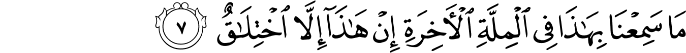 | 38:7:5 | الۡمِلَّةِ | الْمِلَّةِ | الْمِلَّةِ | الْمِلَّةِ | الْمِلَّةِ | ٱلْمِلَّةِ | الملة | ٱلْمِلَّةِ | ﮑ | ٱلْمِلَّةِ | الْمِلَّةِ | الملة | ٱلۡمِلَّةِ |