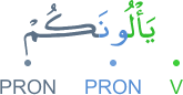 | 3:118:10 | يَاۡلُوۡنَكُمۡ | یَاْلُوْنَكُمْ | یَاْلُوْنَكُمْ | يَاْلُوْنَكُمْ | يَاْلُوْنَكُمْ | يَأْلُونَكُمْ | يَأْلُونَكُمْ | ﮈ | يَأْلُونَكُمْ | يَأْلُونَكُمْ | يَأۡلُونَكُمۡ | يَأۡلُونَكُمۡ | ﱸ | ﱸ |