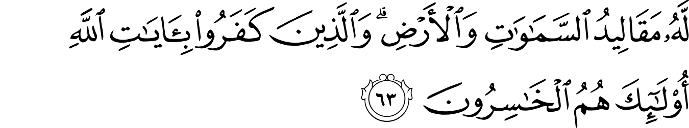 | 39:63:2 | مَقَالِيۡدُ | مَقَالِیْدُ | مَقَالِیْدُ | مَقَالِيْدُ | مَقَالِيْدُ | مَقَالِيدُ | مقاليد | مَقَالِيدُ | ﮛ | مَقَالِيدُ | مَقَالِيدُ | مقاليد | مَقَالِيدُ | مَقَالِيدُ | ﲋ | ﲋ |