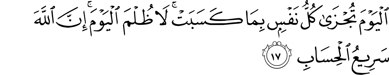 | 40:17:9 | الۡيَوۡمَ ؕ | الْیَوْمَ ؕ | الْیَوْمَ ؕ | الْيَوْمَﵧ | الْيَوْمَؕ | ٱلْيَوْمَ ۚ | اليوم | ٱلْيَوْمَۚ | ﭚﭛ | ٱلْيَوْمَۚ | الْيَوْمَ ۚ | اليوم | ٱلۡيَوۡمَۚ |