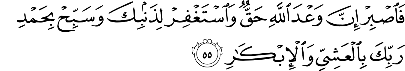 | 40:55:1 | فَاصۡبِرۡ | فَاصْبِرْ | فَاصْبِرْ | فَاصْبِرْ | فَاصْبِرْ | فَٱصْبِرْ | فاصبر | فَٱصْبِرْ | ﮋ | فَٱصْبِرْ | فَاصْبِرْ | فاصبر | فَٱصۡبِرۡ |