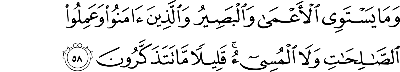 | 40:58:4 | وَالۡبَصِيۡرُ ۙ | وَالْبَصِیْرُ ۙ۬ | وَالْبَصِیْرُ ۙ۬ | وَالْبَصِيْرُﵿ | وَالْبَصِيْرُۙ | وَٱلْبَصِيرُ | والبصير | وَٱلْبَصِيرُ | ﯤ | وَٱلْبَصِيرُ | وَالْبَصِيرُ | والبصير | وَٱلۡبَصِيرُ |