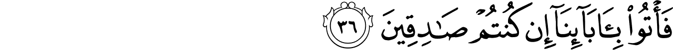 | 44:36:2 | بِاٰبَآٮِٕنَاۤ | بِاٰبَآىِٕنَاۤ | بِاٰبَآىِٕنَاۤ | بِاٰبَآئِنَا٘ | بِاٰبَا࢜ىِٕنَا͏ٓ | بِـَٔابَآئِنَآ | بـابائنا | بِـَٔابَآئِنَآ | ﯫ | بِـَٔابَآئِنَآ | بِآبَائِنَا | باباينا | بِـَٔابَآئِنَآ |
