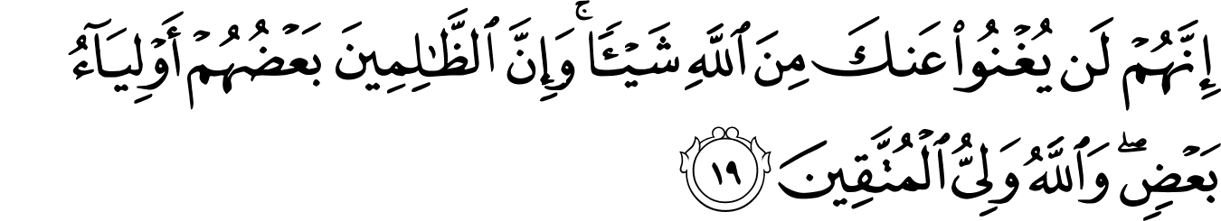 | 45:19:9 | الظّٰلِمِيۡنَ | الظّٰلِمِیْنَ | الظّٰلِمِیْنَ | الظّٰلِمِيْنَ | الظّٰلِمِيْنَ | ٱلظَّـٰلِمِينَ | الظـلمين | ٱلظَّٰلِمِينَ | ﮮ | ٱلظَّٰلِمِينَ | الظَّالِمِينَ | الظالمين | ٱلظَّٰلِمِينَ |