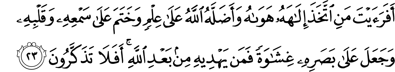 | 45:23:13 | وَقَلۡبِهٖ | وَقَلْبِهٖ | وَقَلْبِهٖ | وَقَلْبِهٖ | وَقَلْبِهٖ | وَقَلْبِهِۦ | وقلبه | وَقَلْبِهِۦ | ﭝ | وَقَلْبِهِۦ | وَقَلْبِهِ | وقلبه | وَقَلۡبِهِۦ |