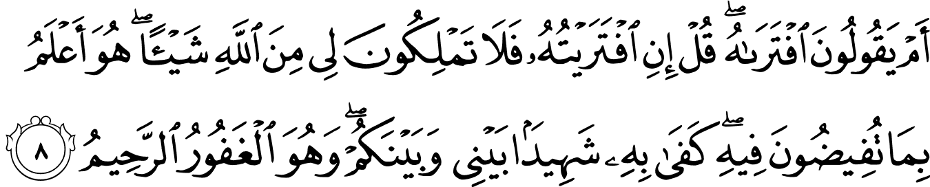| 46:8:6 | افۡتَـرَيۡتُهٗ | افْتَرَیْتُهٗ | افْتَرَیْتُهٗ | افْتَرَيْتُهٗ | افْتَرَيْتُهٗ | ٱفْتَرَيْتُهُۥ | افتريته | ٱفْتَرَيْتُهُۥ | ﭰ | ٱفْتَرَيْتُهُۥ | افْتَرَيْتُهُ | افتريته | ٱفۡتَرَيۡتُهُۥ |