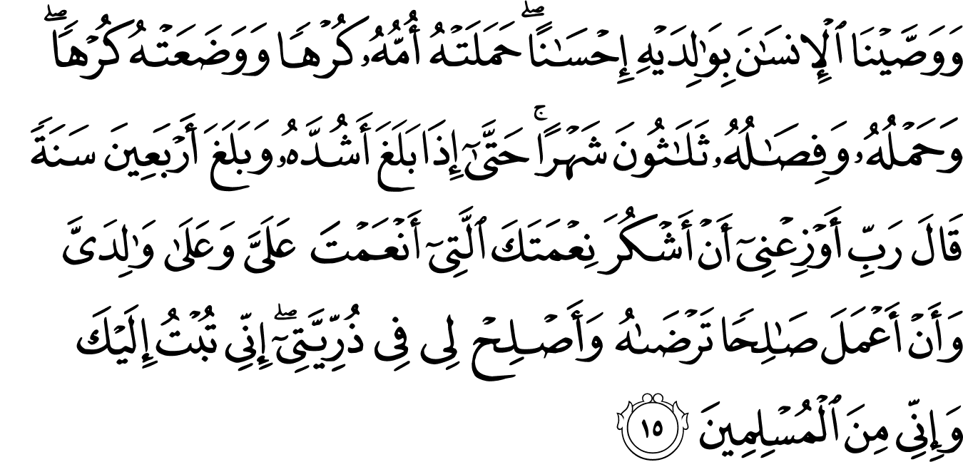 | 46:15:8 | وَّوَضَعَتۡهُ | وَّوَضَعَتْهُ | وَّوَضَعَتْهُ | وَّوَضَعَتْهُ | وَّوَضَعَتْهُ | وَوَضَعَتْهُ | ووضعته | وَوَضَعَتْهُ | ﭙ | وَوَضَعَتْهُ | وَوَضَعَتْهُ | ووضعته | وَوَضَعَتۡهُ |