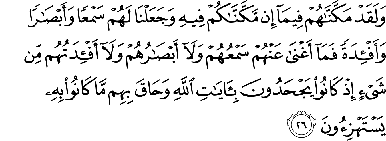 | 46:26:7 | وَجَعَلۡنَا | وَجَعَلْنَا | وَجَعَلْنَا | وَجَعَلْنَا | وَجَعَلْنَا | وَجَعَلْنَا | وجعلنا | وَجَعَلْنَا | ﯓ | وَجَعَلْنَا | وَجَعَلْنَا | وجعلنا | وَجَعَلۡنَا | وَجَعَلۡنَا | ﲢ | ﲢ |