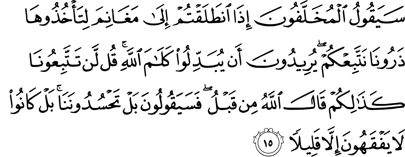 | 48:15:4 | انْطَلَقۡتُمۡ | انْطَلَقْتُمْ | انْطَلَقْتُمْ | انْطَلَقْتُمْ | انْطَلَقْتُمْ | ٱنطَلَقْتُمْ | انطلقتم | ٱنطَلَقْتُمْ | ﯪ | ٱنطَلَقْتُمْ | انطَلَقْتُمْ | انطلقتم | ٱنطَلَقۡتُمۡ |