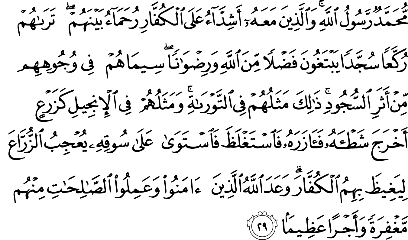| 48:29:4 | وَالَّذِيۡنَ | وَالَّذِیْنَ | وَالَّذِیْنَ | وَالَّذِيْنَ | وَالَّذِيْنَ | وَٱلَّذِينَ | والذين | وَٱلَّذِينَ | ﭕ | وَٱلَّذِينَ | وَالَّذِينَ | والذين | وَٱلَّذِينَ |