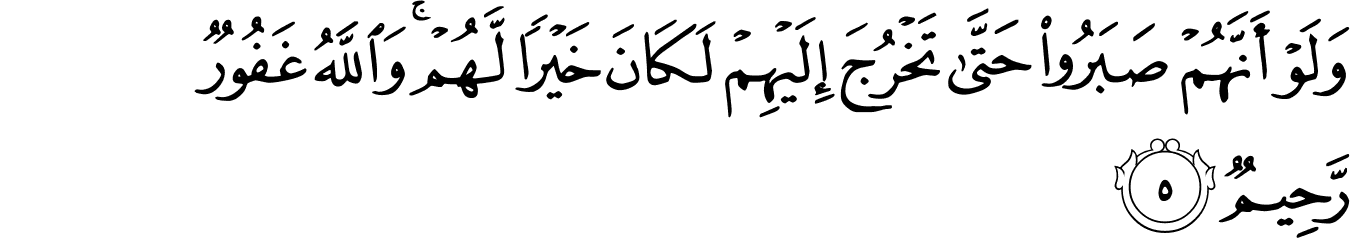 | 49:5:1 | وَلَوۡ | وَلَوْ | وَلَوْ | وَلَوْ | وَلَوْ | وَلَوْ | ولو | وَلَوْ | ﭑ | وَلَوْ | وَلَوْ | ولو | وَلَوۡ | وَلَوۡ | ﱁ | ﱁ |