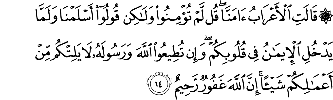 | 49:14:9 | اَسۡلَمۡنَا | اَسْلَمْنَا | اَسْلَمْنَا | اَسْلَمْنَا | اَسْلَمْنَا | أَسْلَمْنَا | اسلمنا | أَسْلَمْنَا | ﮖ | أَسْلَمْنَا | أَسْلَمْنَا | اسلمنا | أَسۡلَمۡنَا | أَسۡلَمۡنَا | ﲆ | ﲆ |