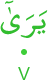 | 53:35:5 | يَرٰى | یَرٰی | یَرٰی | يَرٰي | يَرٰي | يَرَىٰٓ | يرى | يَرَىٰٓ | ﯮ | يَرَىٰٓ | يَرَىٰ | يرى | يَرَىٰٓ | يَرَىٰٓ | ﲽ | ﲽ |