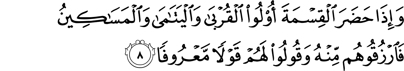 | 4:8:5 | الۡقُرۡبٰى | الْقُرْبٰی | الْقُرْبٰی | الْقُرْبٰي | الْقُرْبٰي | ٱلْقُرْبَىٰ | ٱلْقُرْبَىٰ | ﭪ | ٱلْقُرْبَىٰ | الْقُرْبَىٰ | ٱلۡقُرۡبَىٰ |