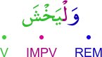 | 4:9:1 | وَلۡيَخۡشَ | وَلْیَخْشَ | وَلْیَخْشَ | وَلْيَخْشَ | وَلْيَخْشَ | وَلْيَخْشَ | وَلْيَخْشَ | ﭴ | وَلْيَخْشَ | وَلْيَخْشَ | وَلۡيَخۡشَ | وَلۡيَخۡشَ | ﱤ | ﱤ |