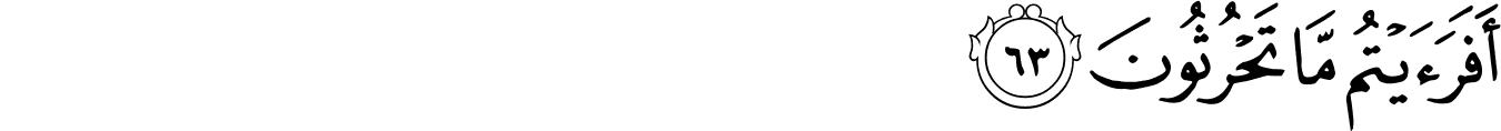 | 56:63:1 | اَفَرَءَيۡتُمۡ | اَفَرَءَیْتُمْ | اَفَرَءَیْتُمْ | اَفَرَءَيْتُمْ | اَفَرَءَيْتُمْ | أَفَرَءَيْتُم | افريتم | أَفَرَءَيْتُم | ﮗ | أَفَرَءَيْتُم | أَفَرَأَيْتُم | افرايتم | أَفَرَءَيۡتُم |
