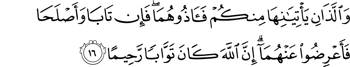 | 4:16:1 | وَالَّذٰنِ | وَالَّذٰنِ | وَالَّذٰنِ | وَالَّذٰنِ | وَالَّذٰنِ | وَٱلَّذَانِ | وَٱلَّذَانِ | ﭩ | وَٱلَّذَانِ | وَاللَّذَانِ | وَٱلَّذَانِ |