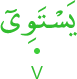 | 59:20:2 | يَسۡتَوِىۡۤ | یَسْتَوِیْۤ | یَسْتَوِیْۤ | يَسْتَوِيْ٘ | يَسْتَوِيْٓ | يَسْتَوِىٓ | يستوى | يَسْتَوِيٓ | ﭾ | يَسْتَوِيٓ | يَسْتَوِي | يستوي | يَسۡتَوِيٓ |
