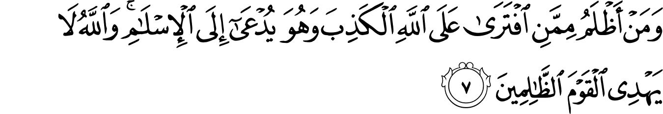 | 61:7:16 | الظّٰلِمِيۡنَ | الظّٰلِمِیْنَ | الظّٰلِمِیْنَ | الظّٰلِمِيْنَ | الظّٰلِمِيْنَ | ٱلظَّـٰلِمِينَ | الظـلمين | ٱلظَّٰلِمِينَ | ﮂ | ٱلظَّٰلِمِينَ | الظَّالِمِينَ | الظالمين | ٱلظَّٰلِمِينَ |