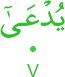 | 61:7:9 | يُدۡعٰٓى | یُدْعٰۤی | یُدْعٰۤی | يُدْعٰ٘ي | يُدْعٰٓي | يُدْعَىٰٓ | يدعى | يُدْعَىٰٓ | ﭺ | يُدْعَىٰٓ | يُدْعَىٰ | يدعى | يُدۡعَىٰٓ |