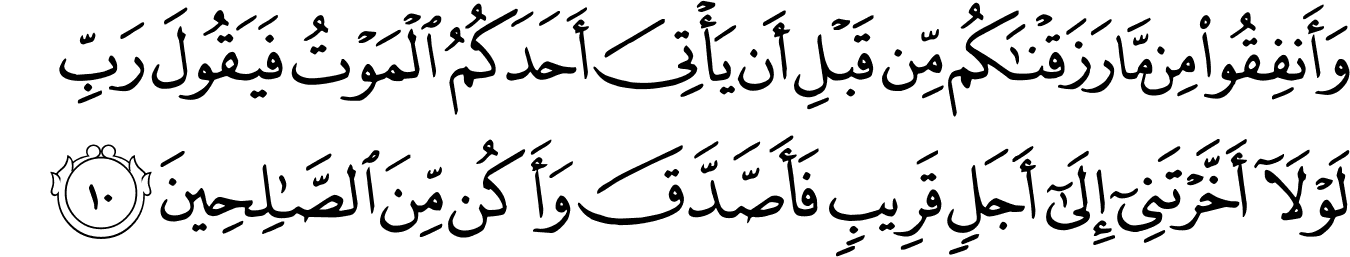 | 63:10:1 | وَاَنۡفِقُوۡا | وَاَنْفِقُوْا | وَاَنْفِقُوْا | وَاَنْفِقُوْا | وَاَنْفِقُوْا | وَأَنفِقُوا۟ | وانفقوا۟ | وَأَنفِقُوا۟ | ﮰ | وَأَنفِقُوا۟ | وَأَنفِقُوا | وانفقوا | وَأَنفِقُواْ |