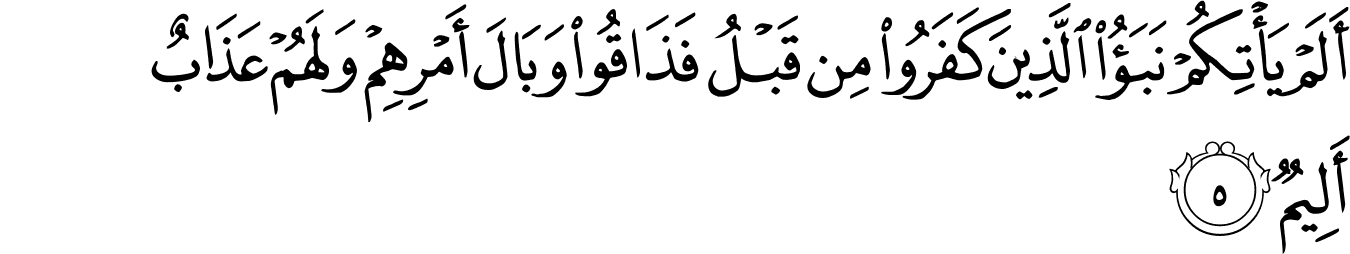 | 64:5:12 | عَذَابٌ | عَذَابٌ | عَذَابٌ | عَذَابٌ | عَذَابٌ | عَذَابٌ | عذاب | عَذَابٌ | ﮘ | عَذَابٌ | عَذَابٌ | عذاب | عَذَابٌ | عَذَابٌ | ﲈ | ﲈ |