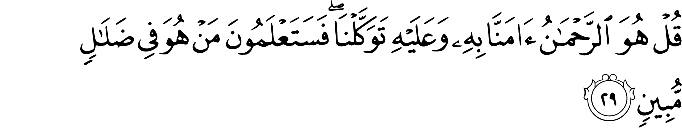 | 67:29:7 | تَوَكَّلۡنَاۚ | تَوَكَّلْنَا ۚ | تَوَكَّلْنَا ۚ | تَوَكَّلْنَاﵐ | تَوَكَّلْنَاۚ | تَوَكَّلْنَا ۖ | توكلنا | تَوَكَّلْنَاۖ | ﭵﭶ | تَوَكَّلْنَاۖ | تَوَكَّلْنَا ۖ | توكلنا | تَوَكَّلۡنَاۖ | تَوَكَّلۡنَاۖ | ﱥﱦ | ﱥﱦ |