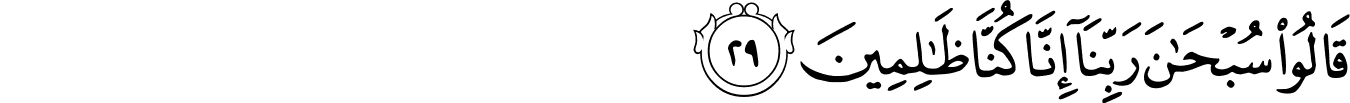 | 68:29:6 | ظٰلِمِيۡنَ | ظٰلِمِیْنَ | ظٰلِمِیْنَ | ظٰلِمِيْنَ | ظٰلِمِيْنَ | ظَـٰلِمِينَ | ظـلمين | ظَٰلِمِينَ | ﮠ | ظَٰلِمِينَ | ظَالِمِينَ | ظالمين | ظَٰلِمِينَ |