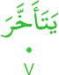 | 74:37:7 | يَتَاَخَّرَؕ | یَتَاَخَّرَ | یَتَاَخَّرَ | يَتَاَخَّرَ | يَتَاَخَّرَ | يَتَأَخَّرَ | يتاخر | يَتَأَخَّرَ | ﰃ | يَتَأَخَّرَ | يَتَأَخَّرَ | يتاخر | يَتَأَخَّرَ | يَتَأَخَّرَ | ﳌ | ﳌ |