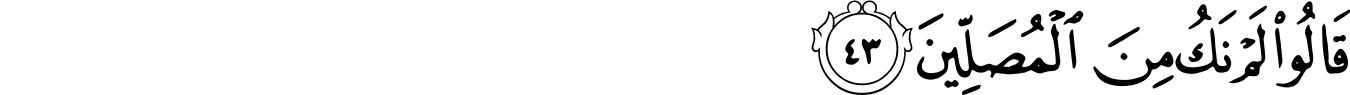| 74:43:5 | الۡمُصَلِّيۡنَۙ | الْمُصَلِّیْنَ | الْمُصَلِّیْنَ | الْمُصَلِّيْنَ | الْمُصَلِّيْنَ | ٱلْمُصَلِّينَ | المصلين | ٱلْمُصَلِّينَ | ﰟ | ٱلْمُصَلِّينَ | الْمُصَلِّينَ | المصلين | ٱلۡمُصَلِّينَ |