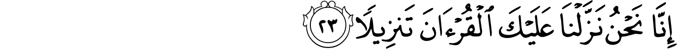 | 76:23:6 | تَنۡزِيۡلًا ۚ | تَنْزِیْلًا | تَنْزِیْلًا | تَنْزِيْلًا | تَنْزِيْلًا | تَنزِيلًۭا | تنزيلۭا | تَنزِيلࣰا | ﰊ | تَنزِيلࣰا | تَنزِيلًا | تنزيلا | تَنزِيلٗا |