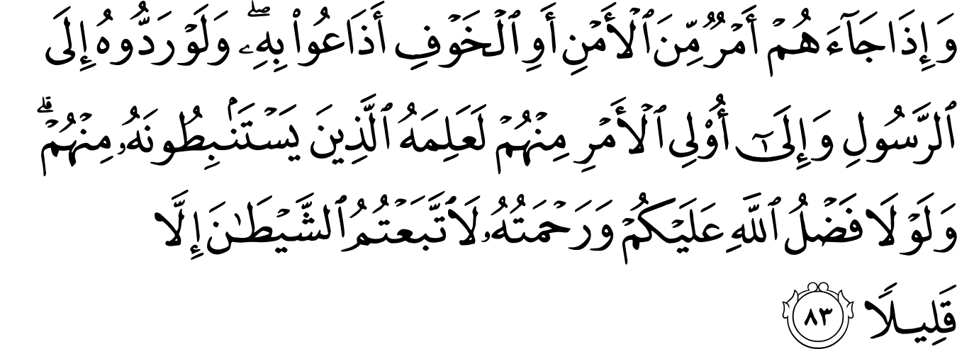 | 4:83:1 | وَاِذَا | وَاِذَا | وَاِذَا | وَاِذَا | وَاِذَا | وَإِذَا | وَإِذَا | ﮊ | وَإِذَا | وَإِذَا | وَإِذَا | وَإِذَا | ﱺ | ﱺ |