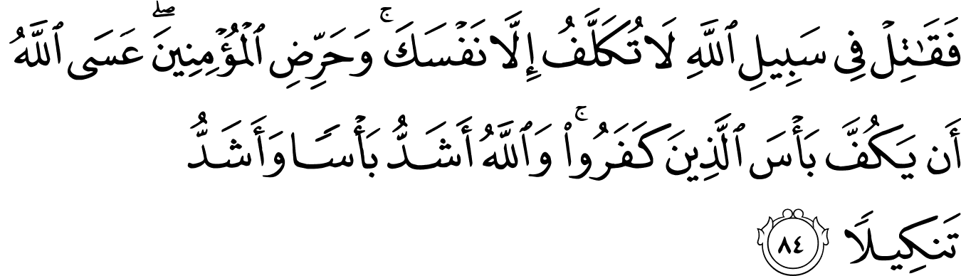 | 4:84:1 | فَقَاتِلۡ | فَقَاتِلْ | فَقَاتِلْ | فَقَاتِلْ | فَقَاتِلْ | فَقَـٰتِلْ | فَقَٰتِلْ | ﮫ | فَقَٰتِلْ | فَقَاتِلْ | فَقَٰتِلۡ |