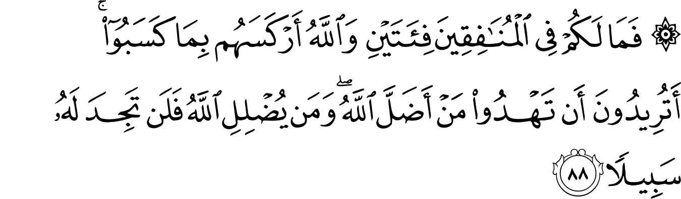 | 4:88:4 | الۡمُنٰفِقِيۡنَ | الْمُنٰفِقِیْنَ | الْمُنٰفِقِیْنَ | الْمُنٰفِقِيْنَ | الْمُنٰفِقِيْنَ | ٱلْمُنَـٰفِقِينَ | ٱلْمُنَٰفِقِينَ | ﭩ | ٱلْمُنَٰفِقِينَ | الْمُنَافِقِينَ | ٱلۡمُنَٰفِقِينَ |