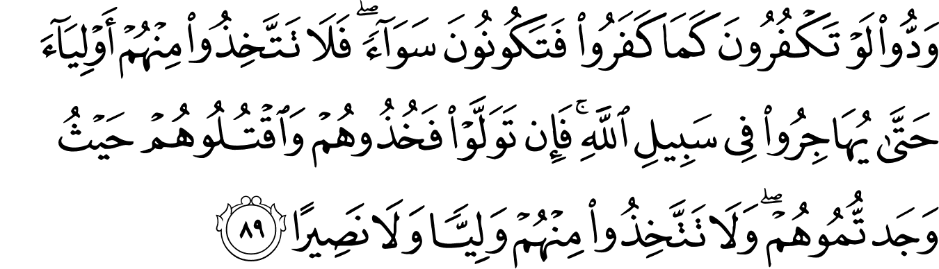 | 4:89:3 | تَكۡفُرُوۡنَ | تَكْفُرُوْنَ | تَكْفُرُوْنَ | تَكْفُرُوْنَ | تَكْفُرُوْنَ | تَكْفُرُونَ | تَكْفُرُونَ | ﮁ | تَكْفُرُونَ | تَكْفُرُونَ | تَكۡفُرُونَ | تَكۡفُرُونَ | ﱱ | ﱱ |